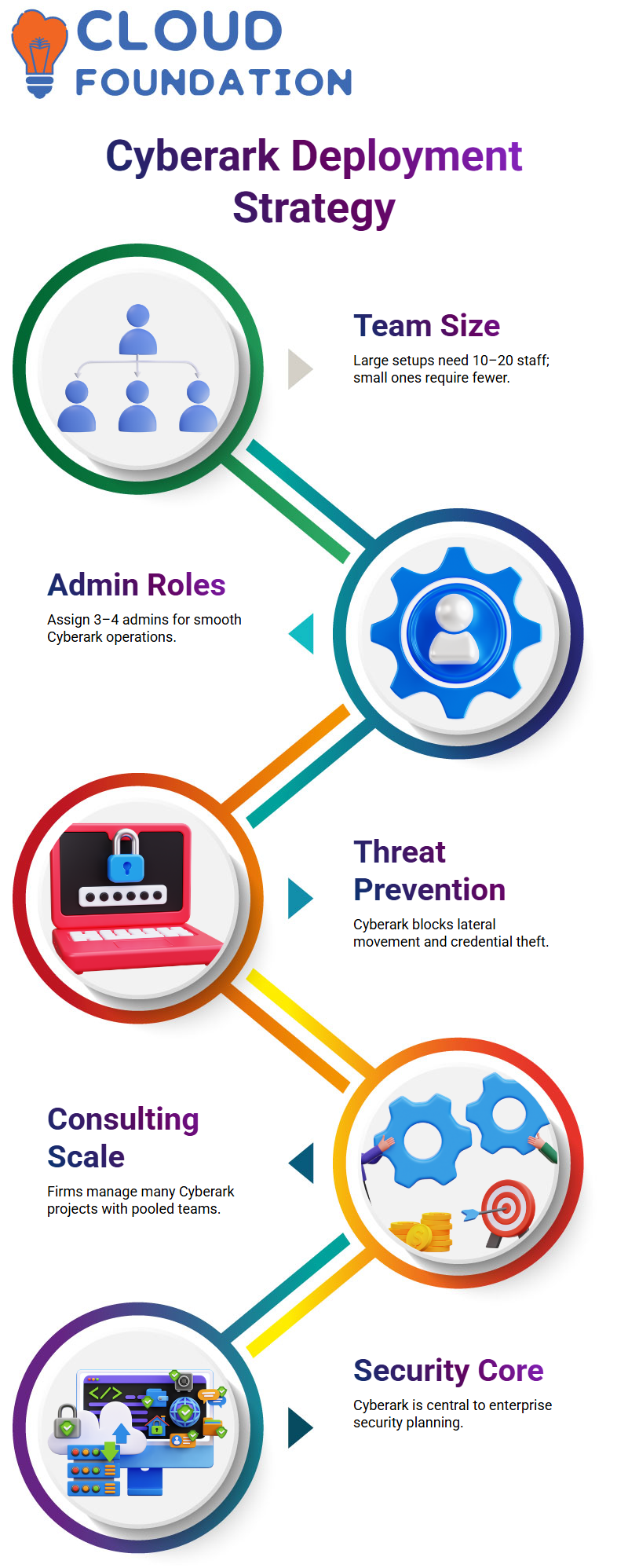 We must designate two to three individuals for implementation work and a minimum of three to four administrators for Cyberark on regular projects.