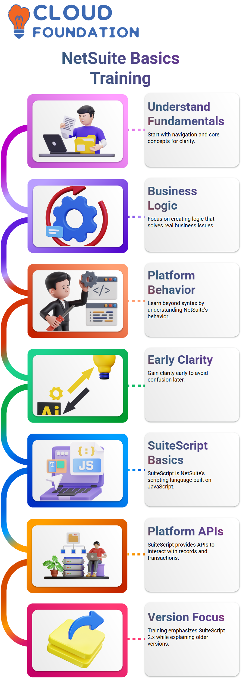 This distinction is crucial for mastering NetSuite technical skills. Despite its familiar appearance, I always remind my learners that Suite Script is not the same as simple JavaScript.