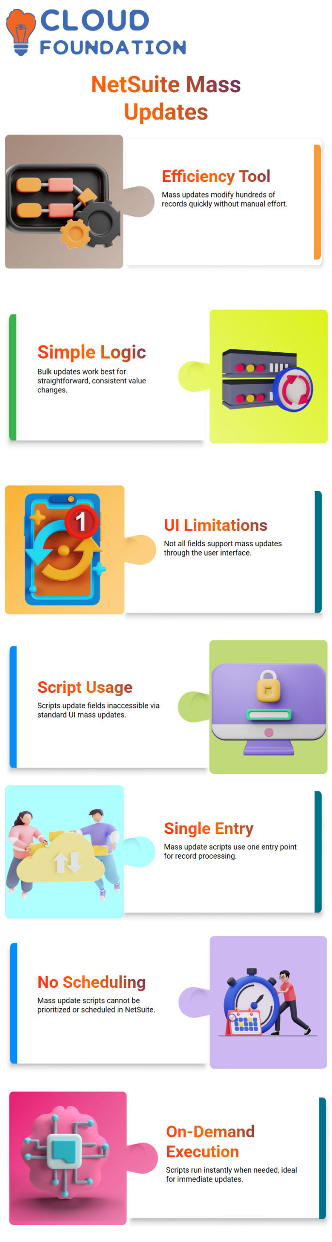 Mass update scripts, however, are ideally suited to the NetSuite ecosystem for on-demand execution.