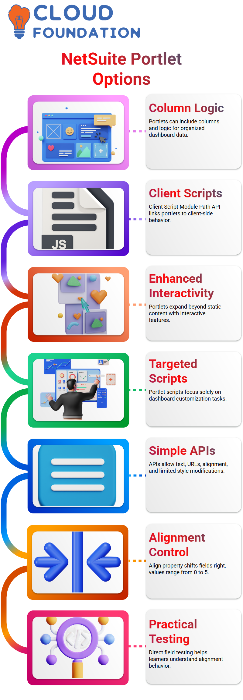 Using the client Script Module Path API to connect a client script to a portlet is another potent NetSuite capability.