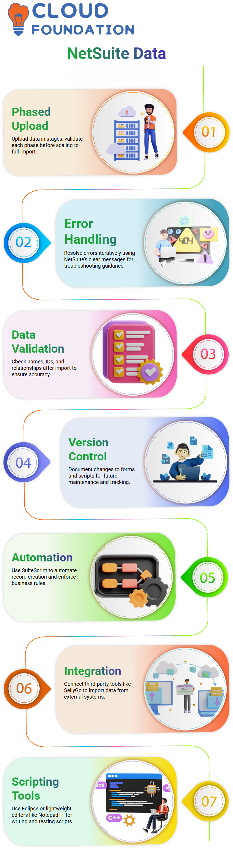 Resolve errors iteratively – NetSuite provides clear error messages that can guide troubleshooting.