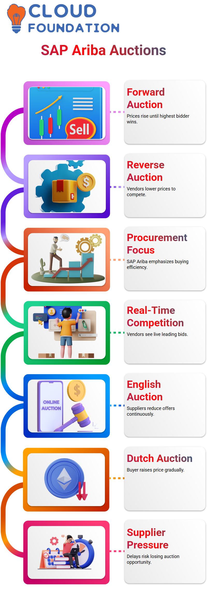 Let me first explain the fundamental idea of forward and reverse auctions before delving further into SAP Ariba auction types.