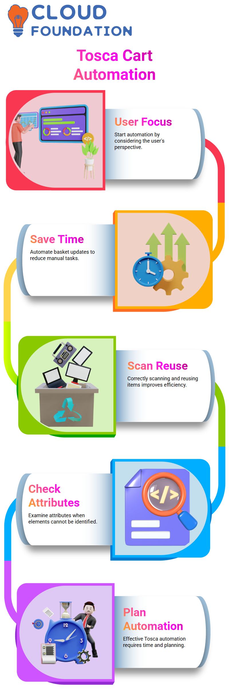 I usually start by considering the user’s perspective while automating shopping cart situations in Tosca.