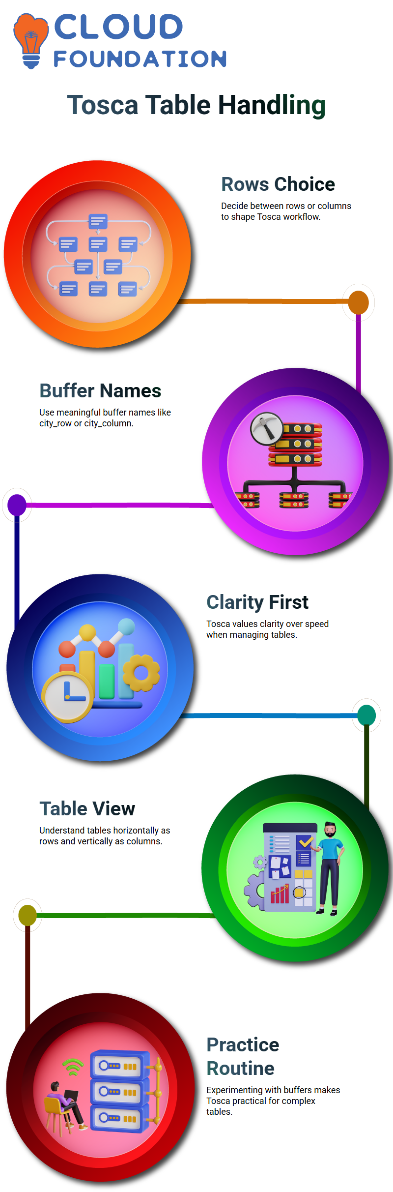 I usually begin working with tables in Tosca by taking my time and determining whether I need rows or columns.