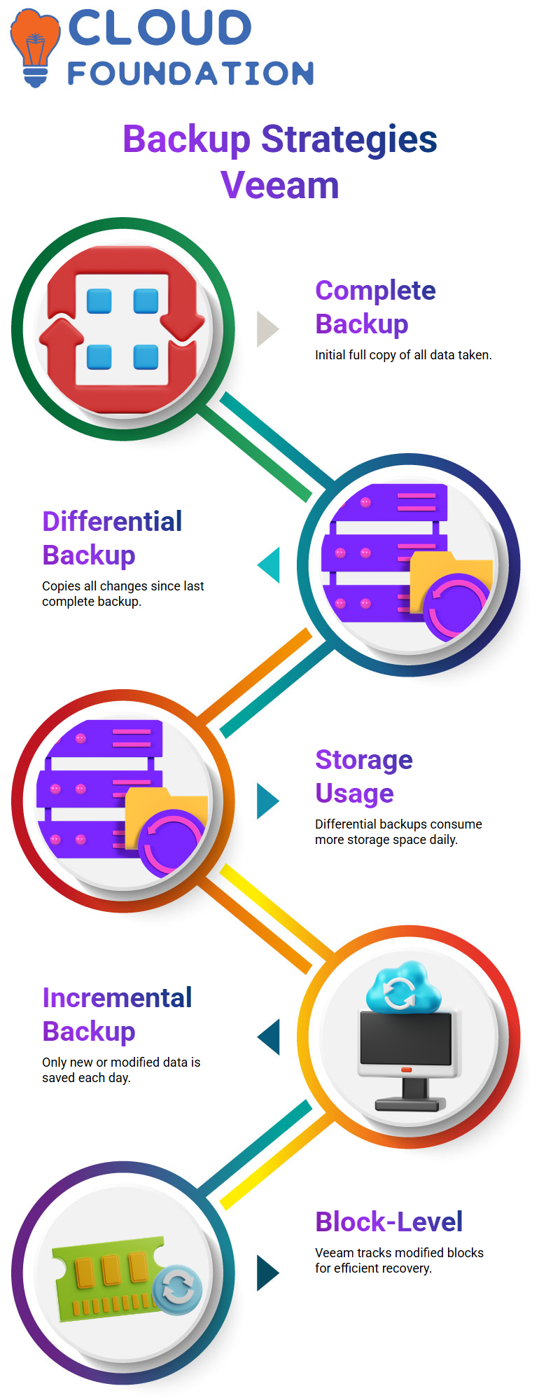 Understanding this concept enables you to comprehend why Veeam created more effective block-level backups, even though Veeam does not depend on conventional differential backups.