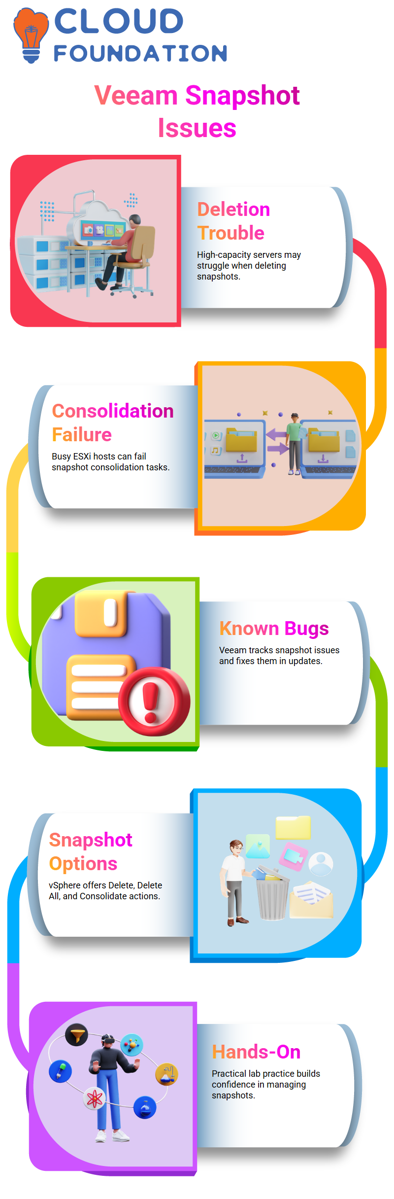 Veeam backups stay stable only if snapshots are cleaned up the right way.