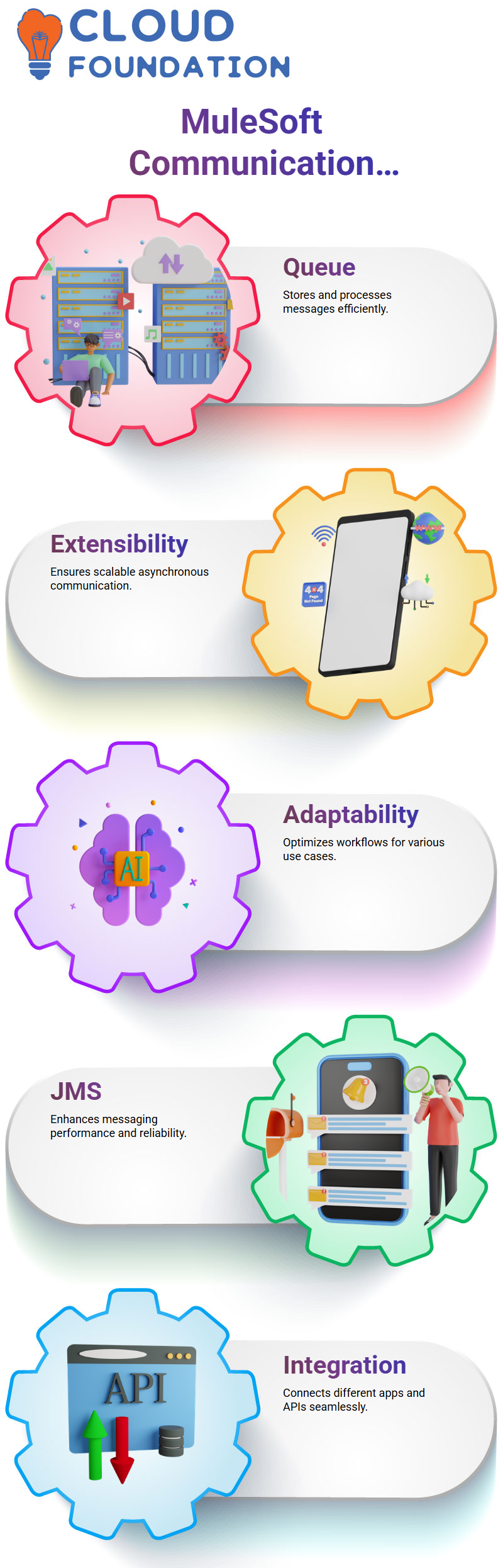 When it comes to communication between applications, MuleSoft relies on message queues for the smooth running of it all.
