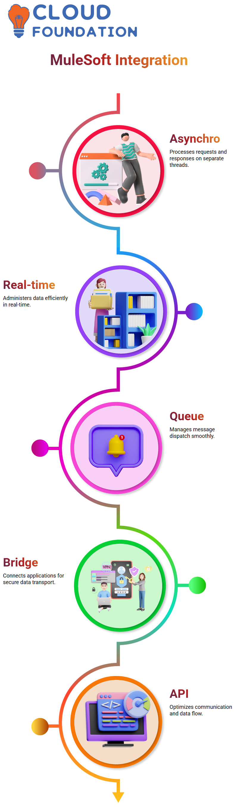 From my own drill with integrations, I have seen that MuleSoft not only supports asynchronous informing but is also the best tool for expedient API communication and data flow between the apps.
