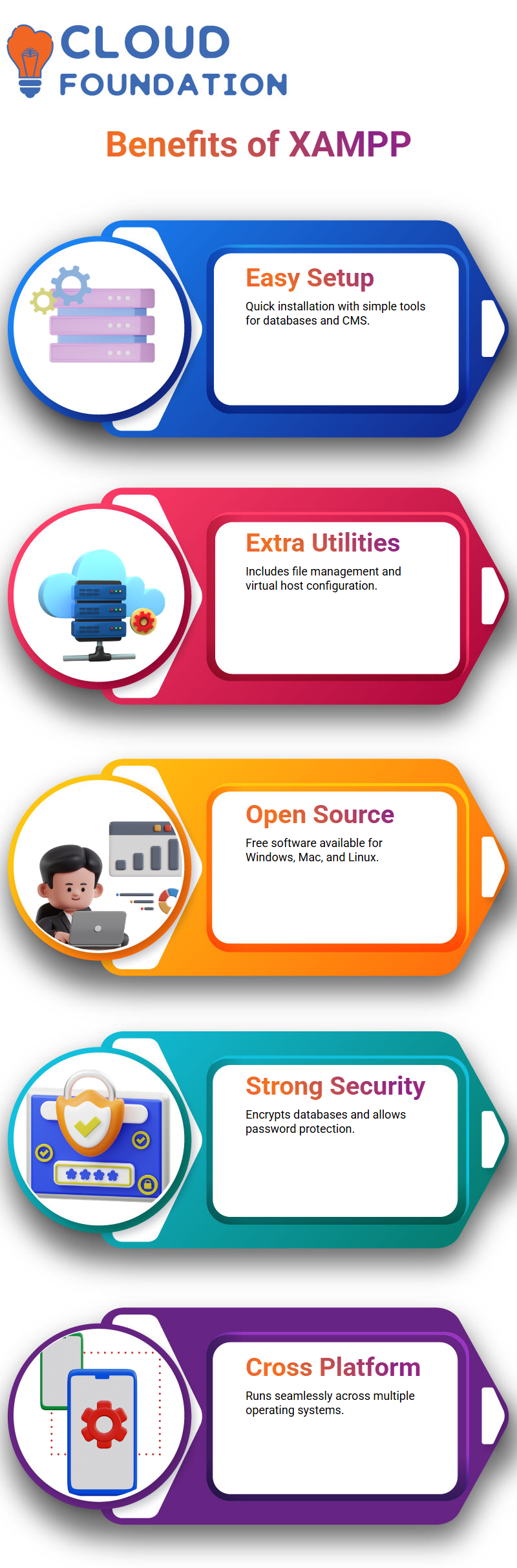 There are a number of benefits to using XAMPP that will come in handy both in terms of instruction and hands-on practise.