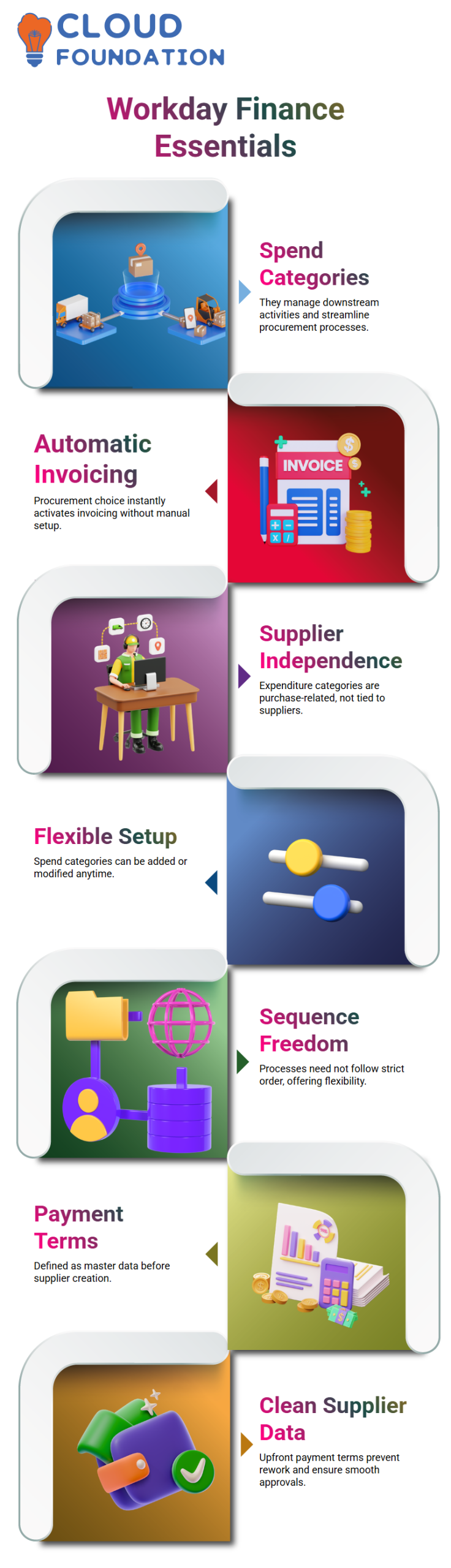 When I create a spend category in Workday Finance and choose procurement, the system instantly activates invoicing.