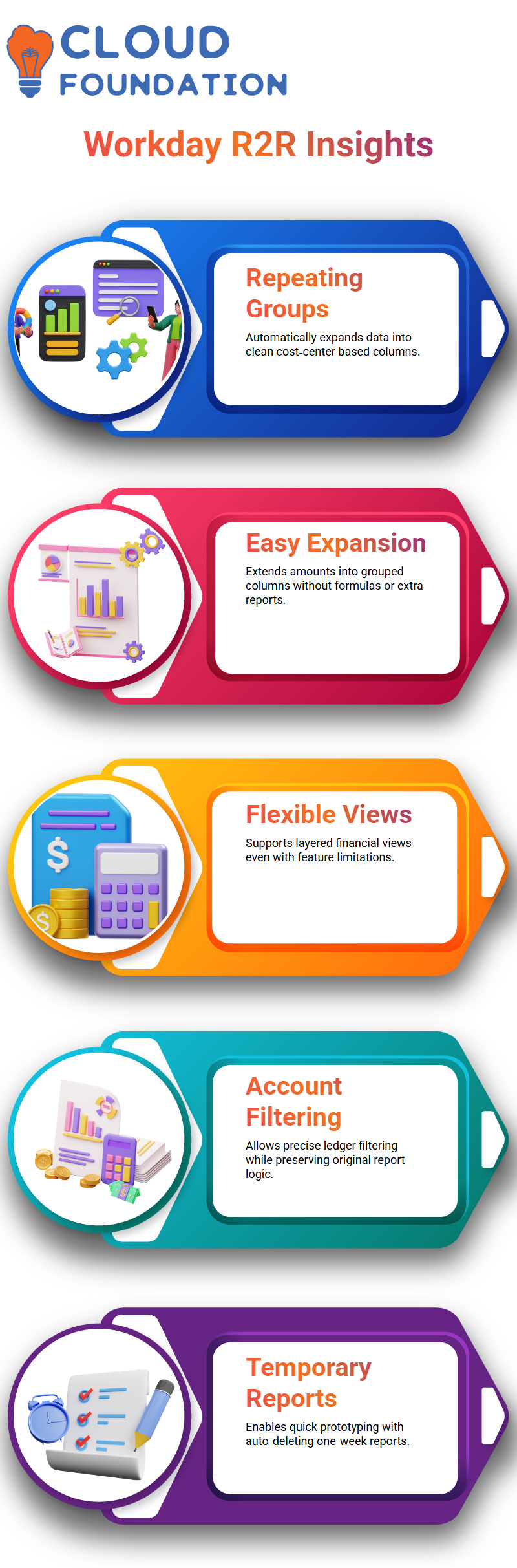 One of the strongest features inside Workday Finance R2R composite reporting is the repeating column group.
