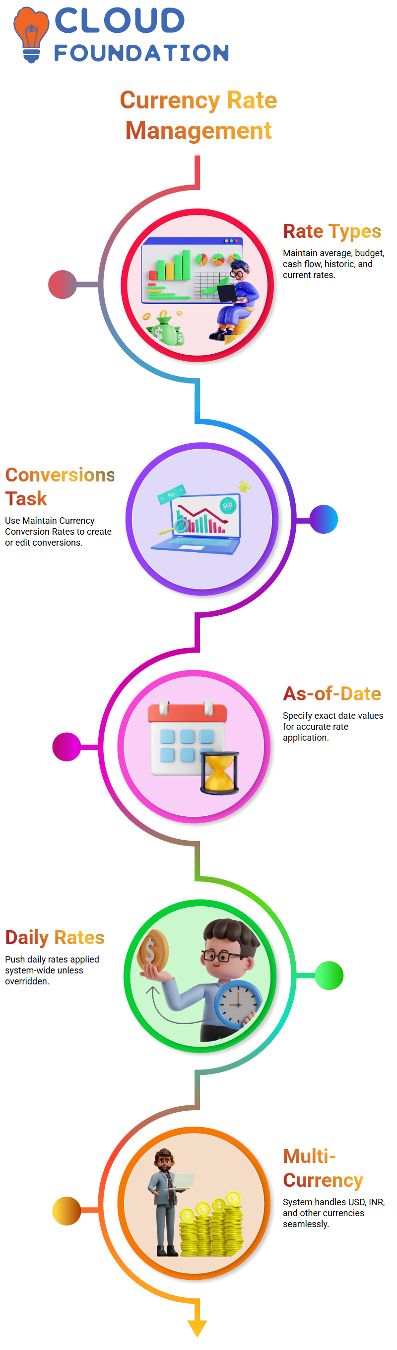 This flow keeps our financial data accurate and aligned with real-time currency movements, which is essential when teaching students how real systems operate in Workday Finance R2R environments.