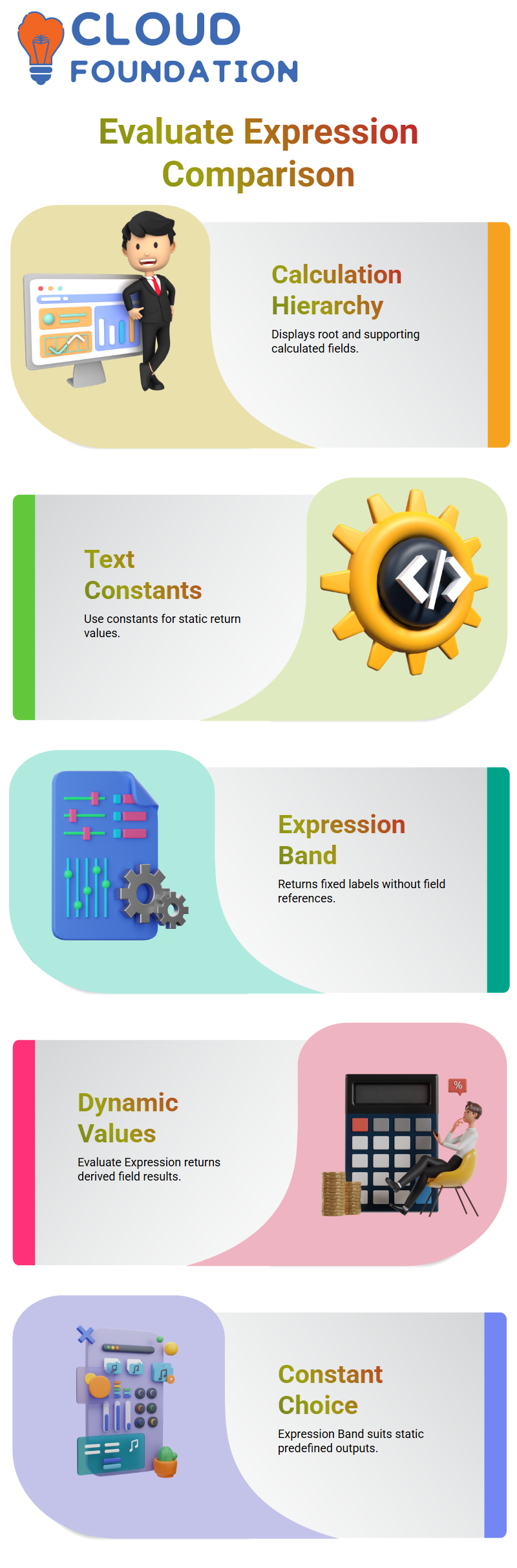 I’ll describe how I choose which one to use in Workday Integration. I select Evaluate Expression Band in Workday Integration if I have several criteria and I want to return a static value for each condition. For fixed labels like High, Medium, or Low-income ranges, this is effective.