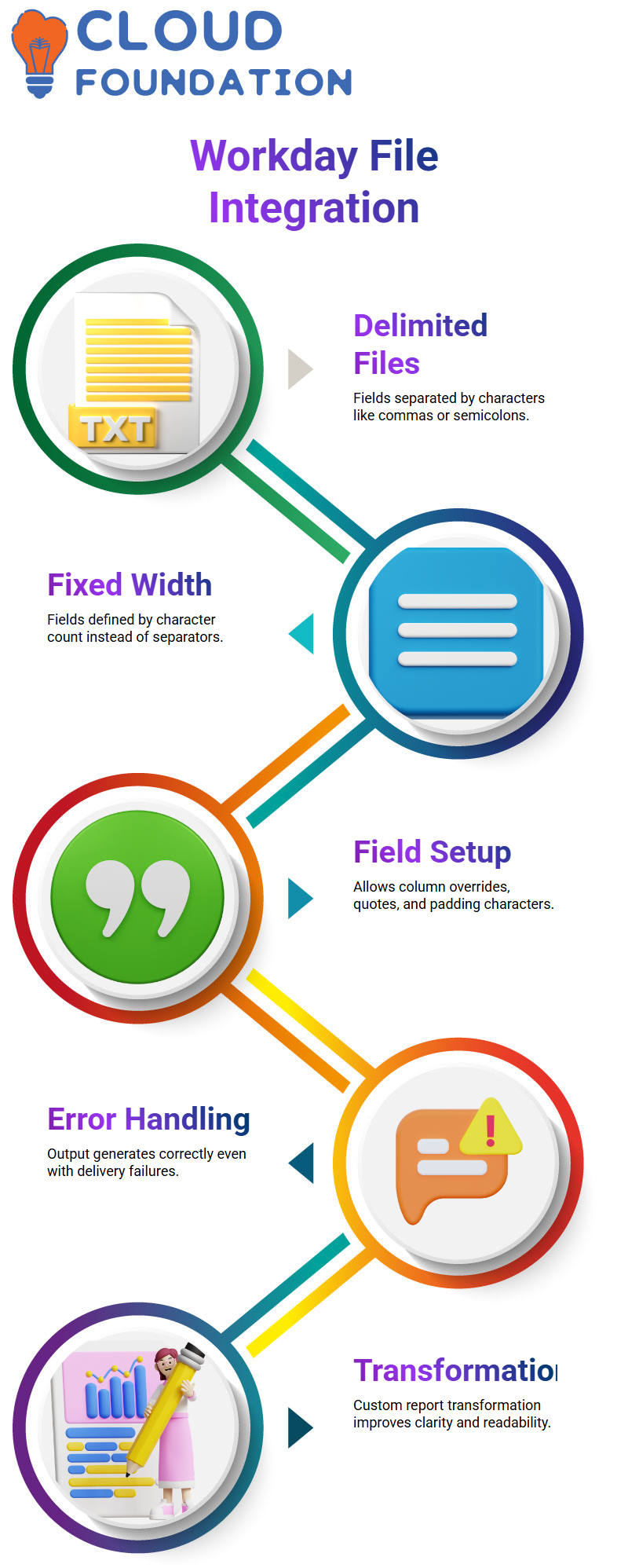 For instance, a comma may be used to separate First Name, Last Name, and Date of Birth. In Workday Integration, this is straightforward and adaptable.