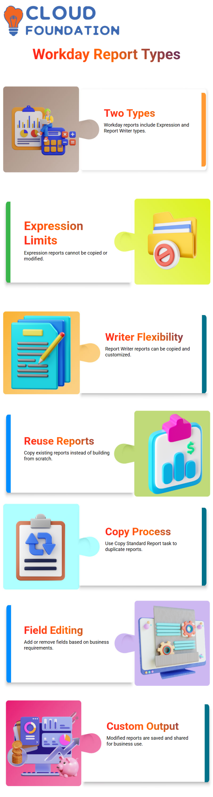 When Workday Integration sends reports, there are two main types: Expression and Report Writer.