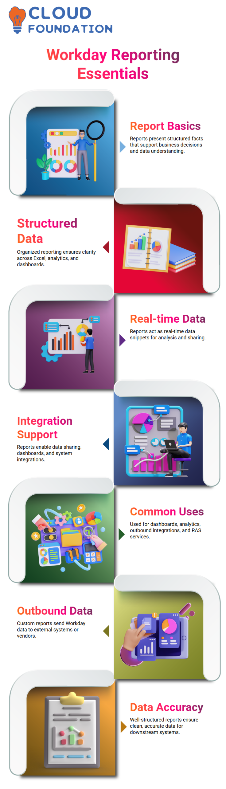 When I work with Workday Integration, I think of reports as snippets of real-time data. I look at data with Workday Integration reports, share it with business teams, make dashboards, and help with connections.
