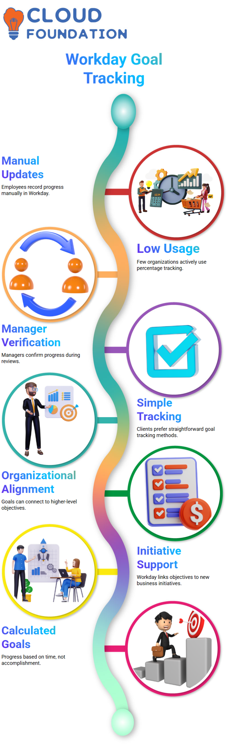Despite its existence, many clients who use performance management and Workday Talent prefer more straightforward goal tracking that doesn’t involve frequent percentage updates.
