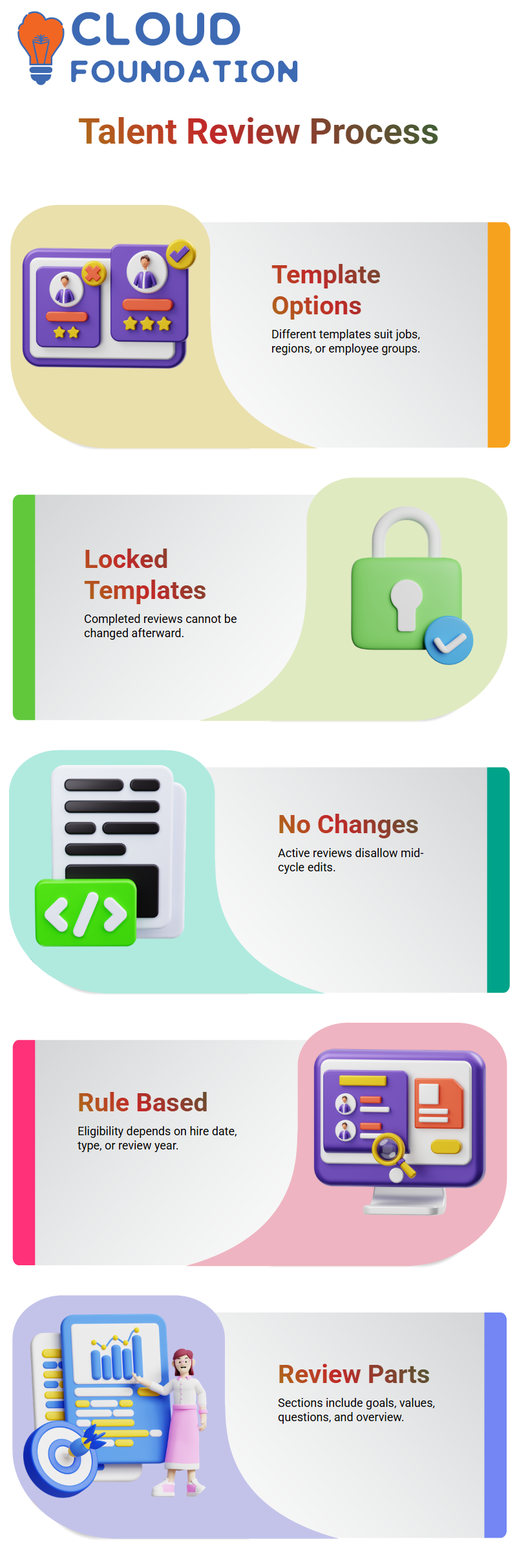 I may limit or expose fields, demand reasons, and match the template with business objectives. Every feature of Workday Talent and performance management enables systematic and fair reviews.