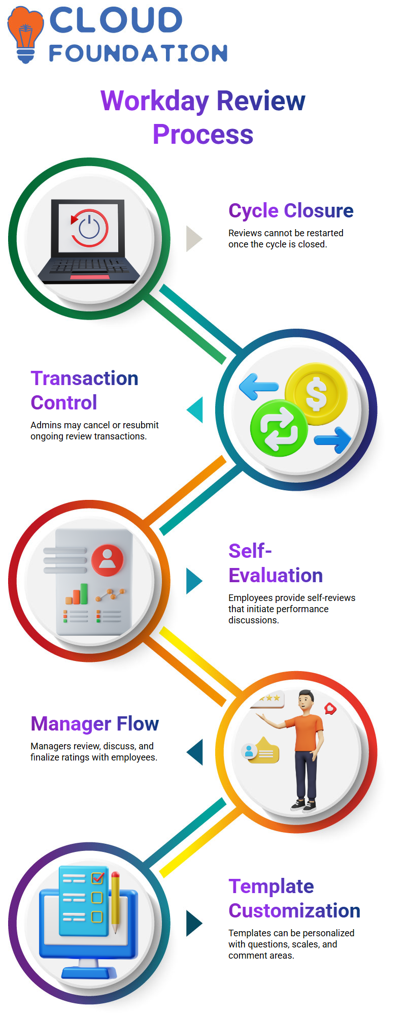 Allow me to explain the general workflow of Workday Talent and performance management. Once the performance cycle begins, the system provides the review to the employee first.